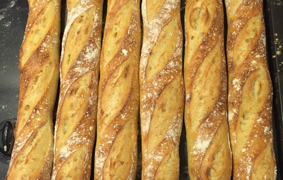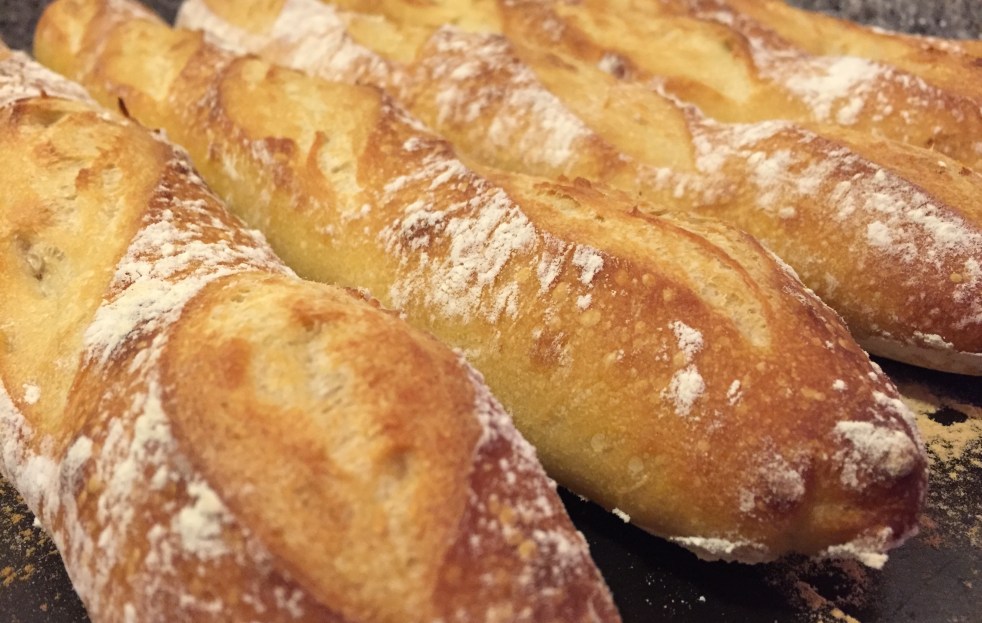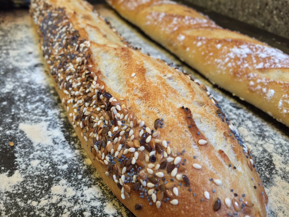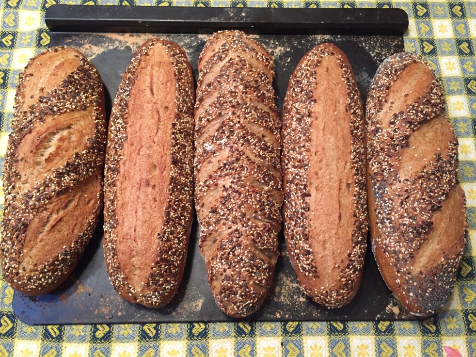 Usually using sourdough as a levant for the bread bring a sour taste to the bread. This time we could barely see the difference in taste. Baguettes were great, in particular with the grains, but the sourdough flavor was extremely light.