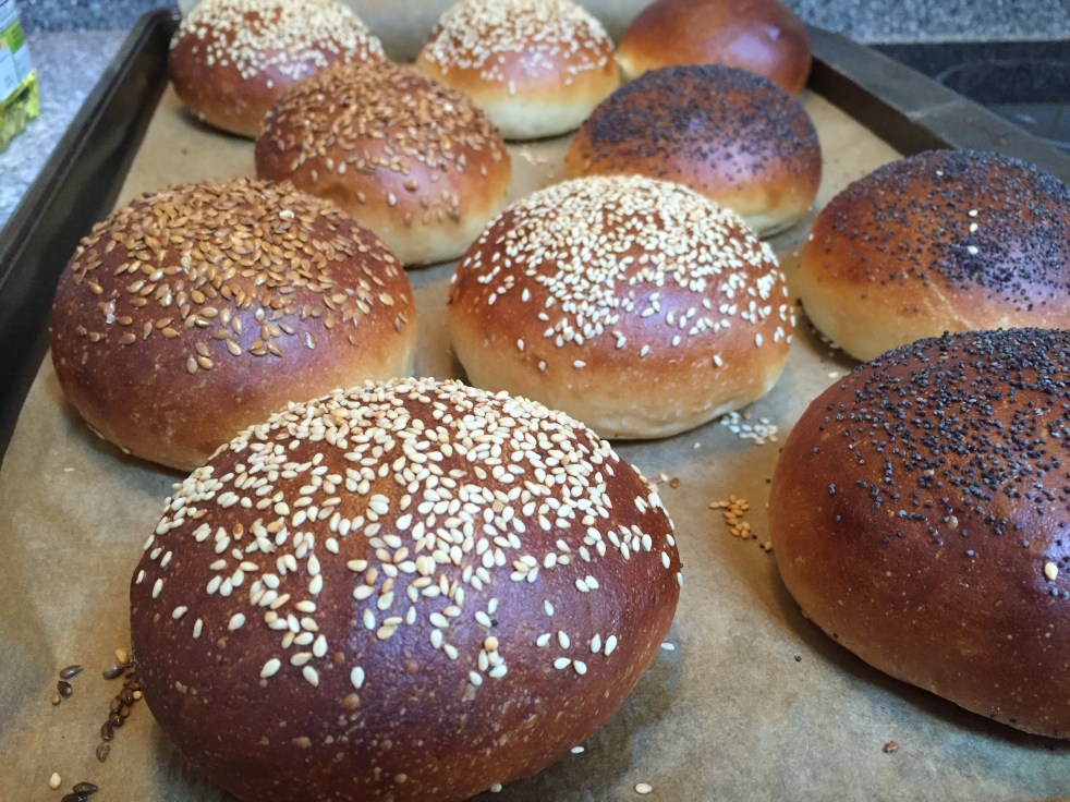 For 10 buns: 600g flour 25g sugar 133g water 266 milk (Whole) 12g salt 1/2 pack of yeast (~4g) In a large bowl mix the flour, sugar and yeast. Add the milk and eater. Start kneading. Add the salt when the dough is becoming homogeneous. Rise overnight until the dough double in volume. Cut the… Continue reading Burger Buns